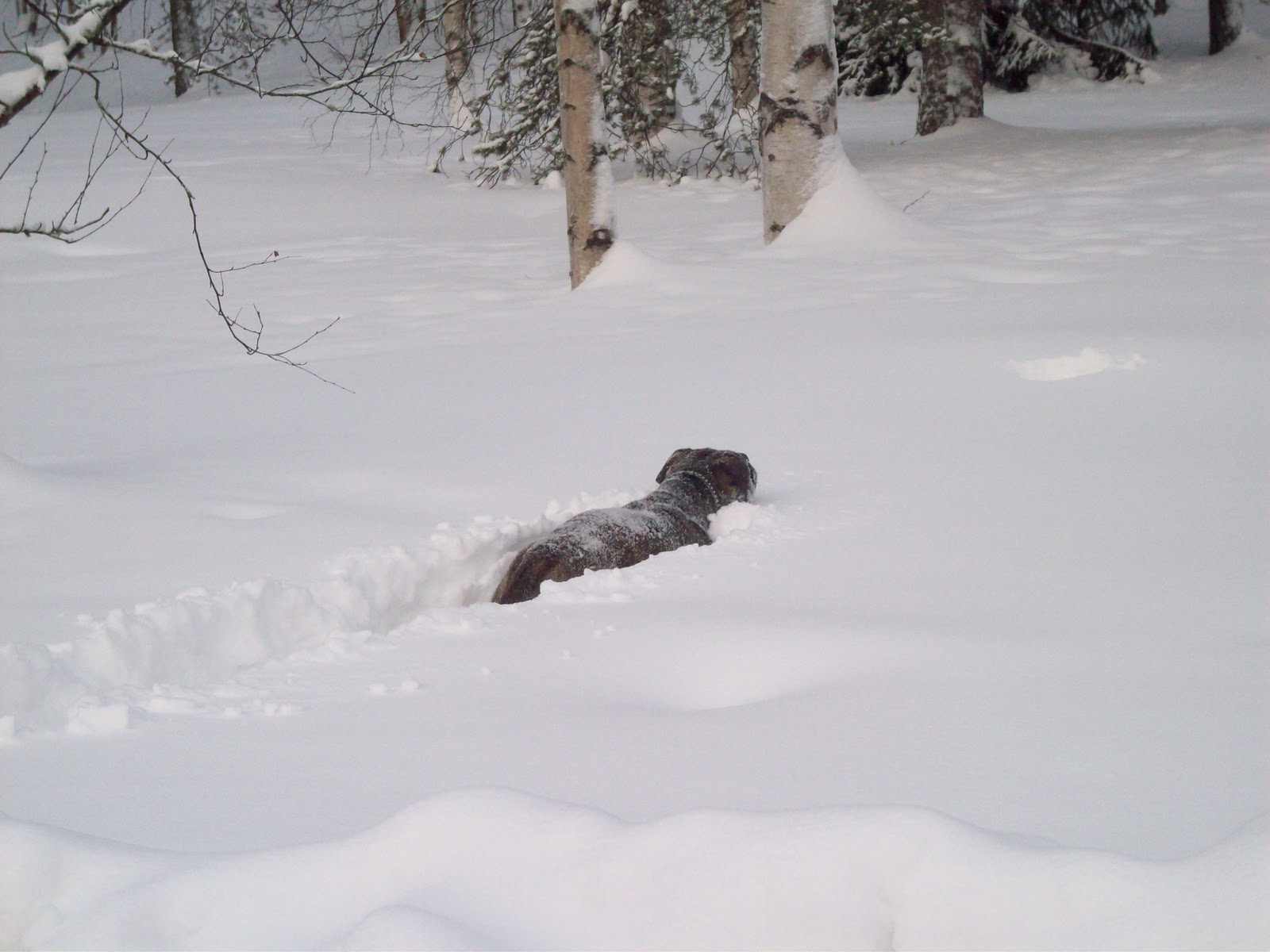 Jag träffade en hund nere på Bölesholmarna vid namn Honey (en engelsk bulldogg), jag tror hon drömmer om lite mindre snö när hon ska hämta pinnen.