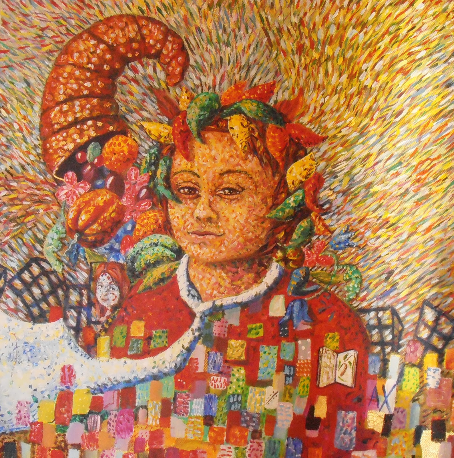 Den andra bilden är på en målning jag gjorde för ett par år sedan med temat ”Survivor” och den och jag reste till Göteborg för att ställa ut på galleri Cosmopolitan med andra utställare. Allt till stöd för Rosa Bandet, även en bok blev utgiven i temat och där fanns det här konstverket med.