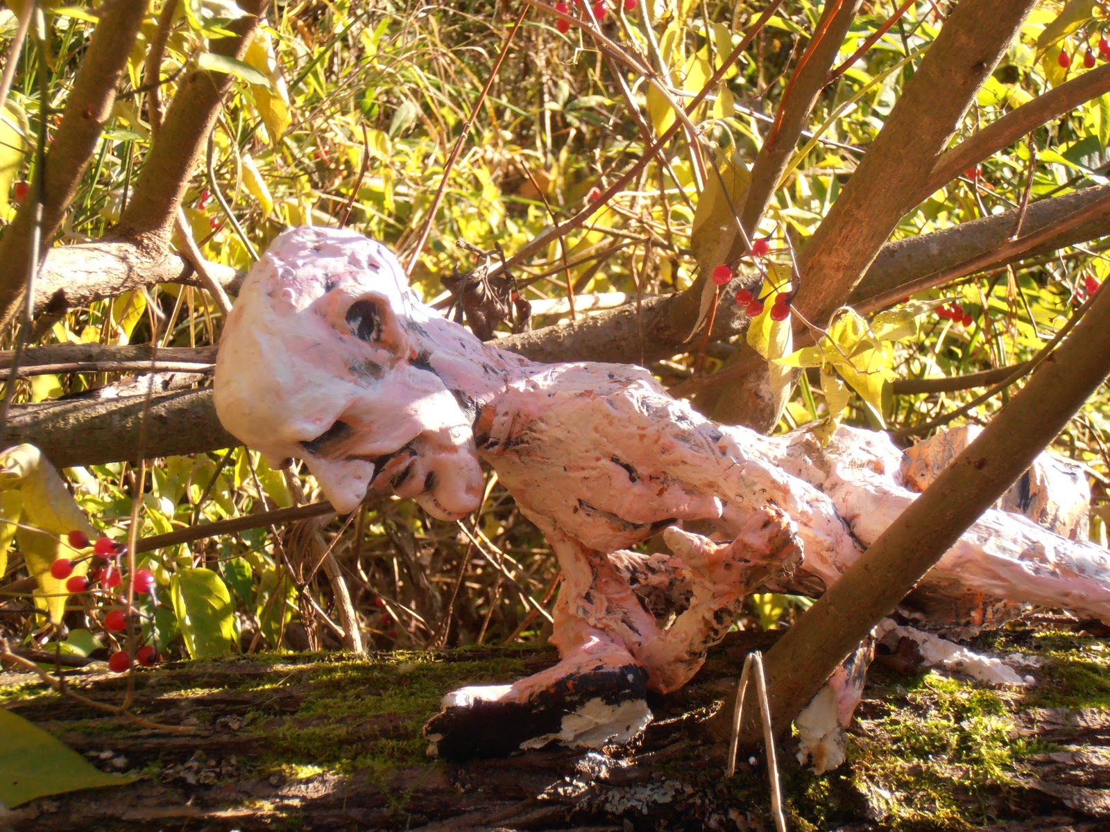 Den tredje bilden är på en skulptur jag gjort ”SHE”, hon är svagt rosa och är donerad till naturen. Jag har nu följt hennes utveckling sedan i våras. Intressant att se hur hon sjunker ihop mer och mer och det blir spännande att fota henne när snön kommer.