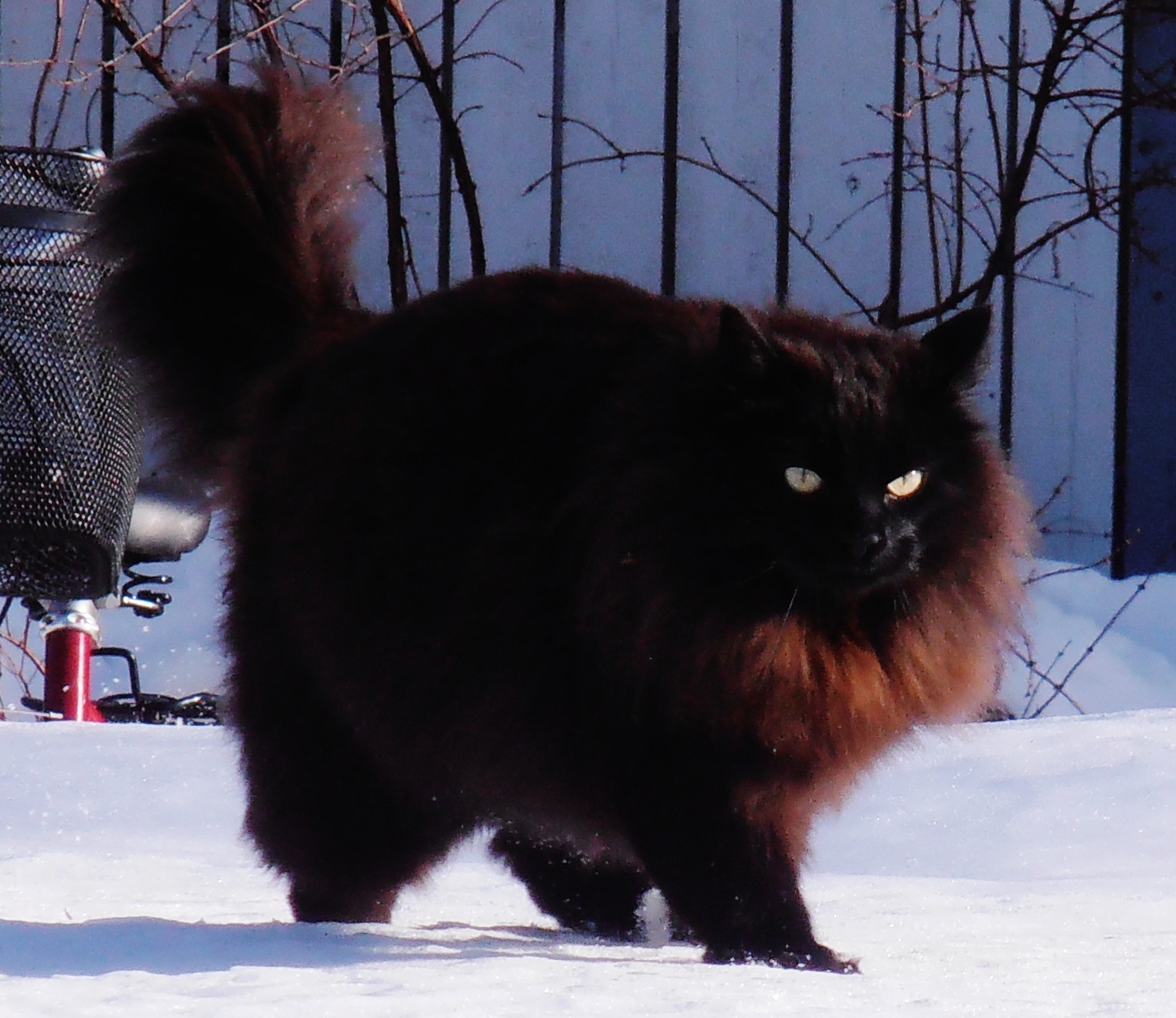 Slutligen möter jag grannens katt Douglas vars ben är prickiga av snö. Sen är han ju en trevlig prick.